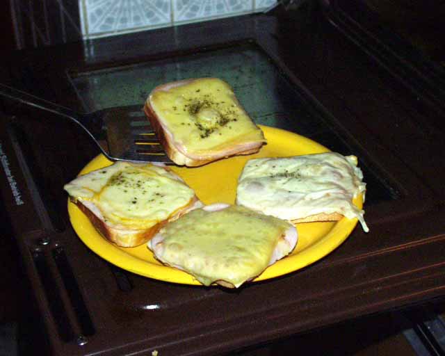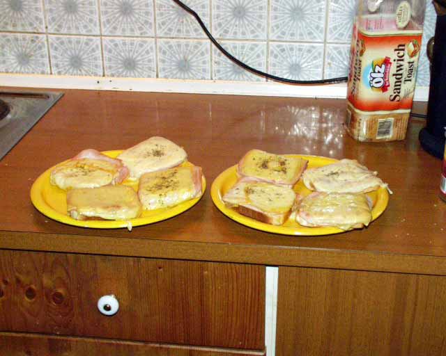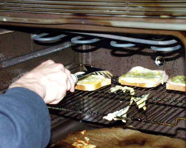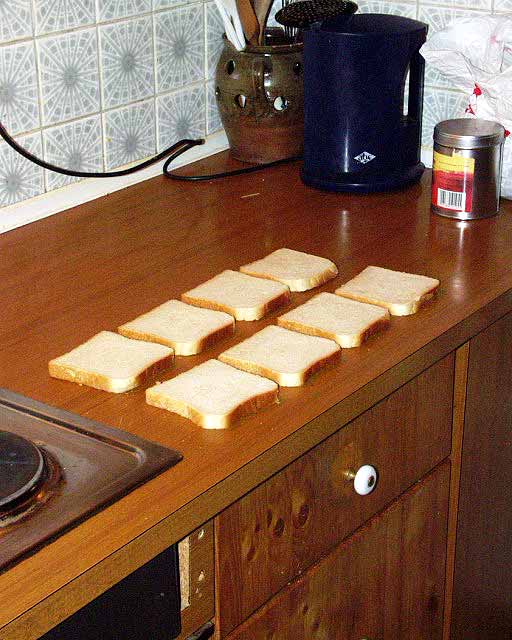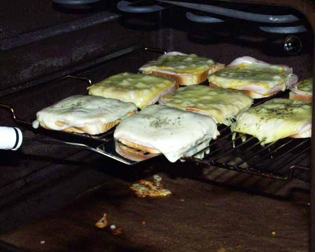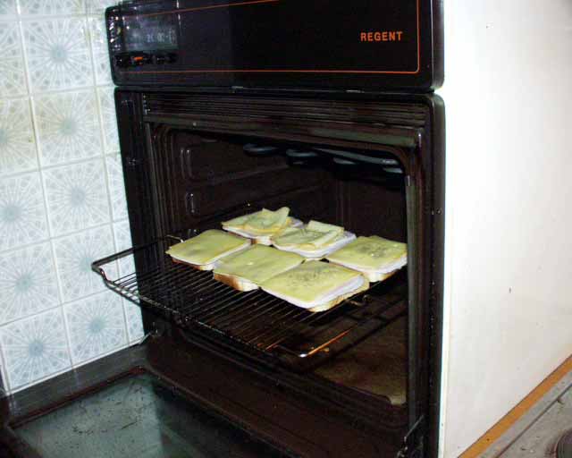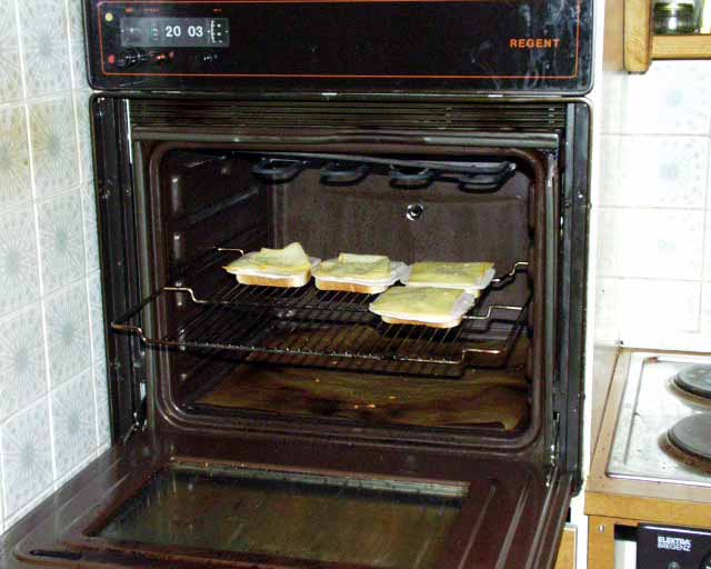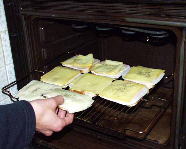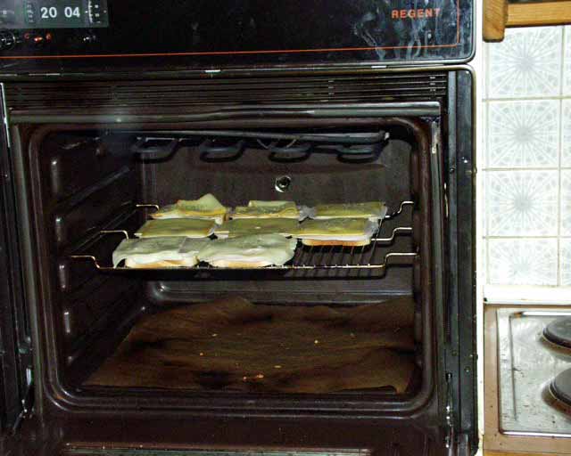 - die Toasts auf ein Blech oder (besser:) auf einen Rost legen. Achtung: