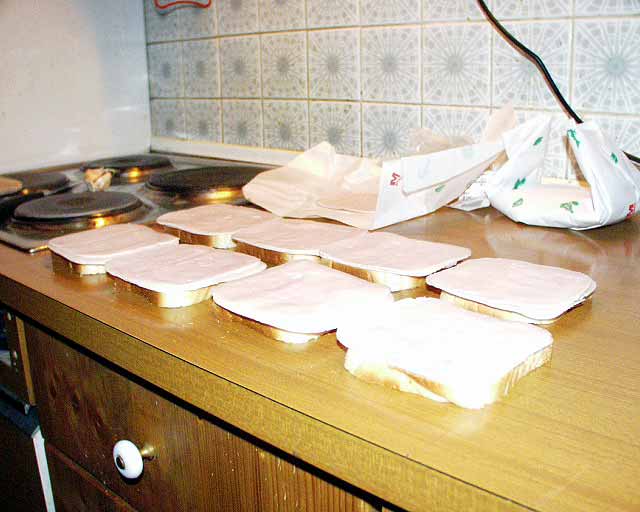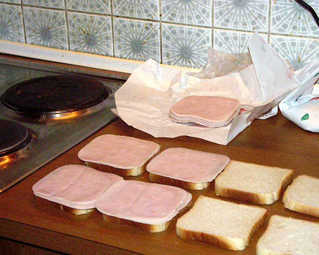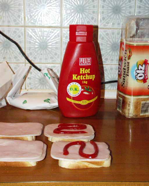 - 2 Scheiben Schinken; alternativ oder zusätzlich Salami