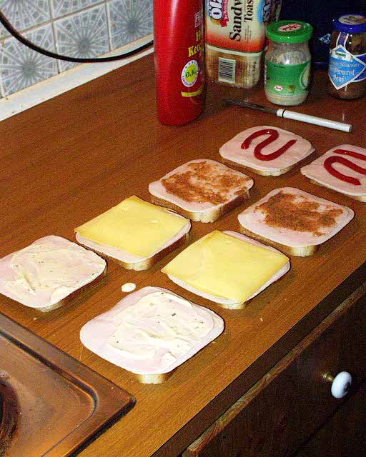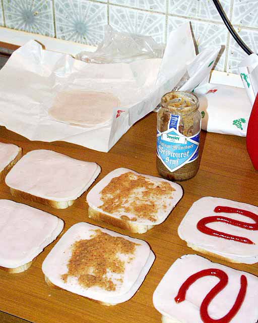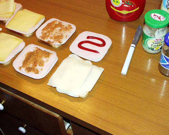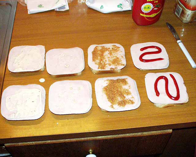 - Senf (am besten französischer), allein oder mit Pfefferoni