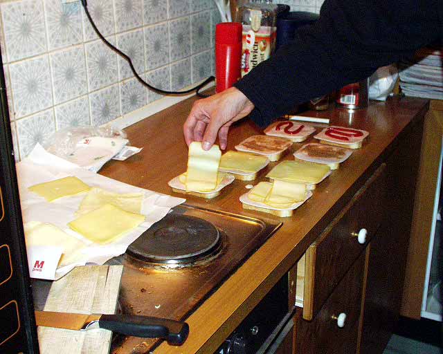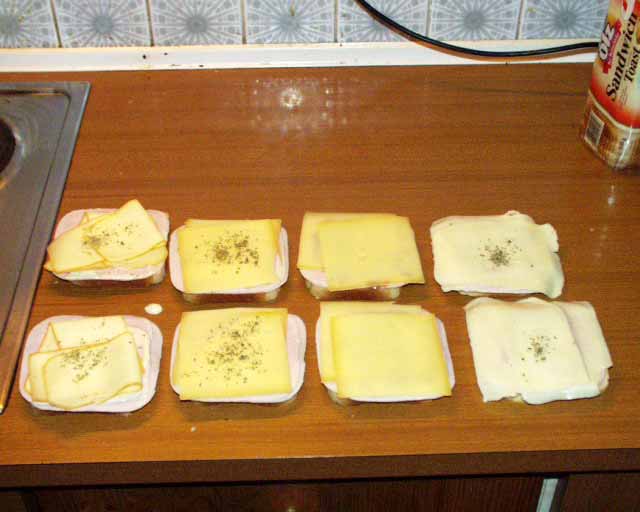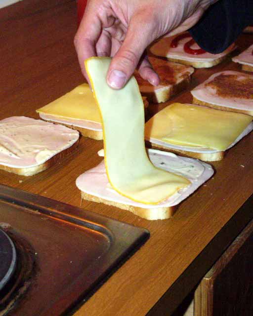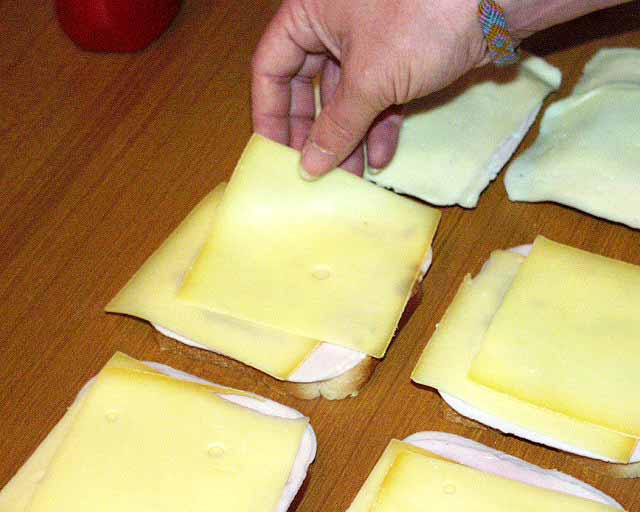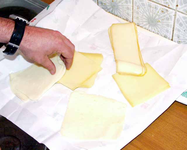 - 24 dag viereckige Käsescheiben (= 16 Scheiben), am besten vier