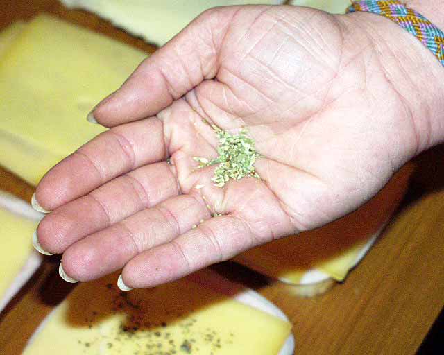 - Paprika (Trick: unter den Käse zum Schutz gegen Verbrennen)